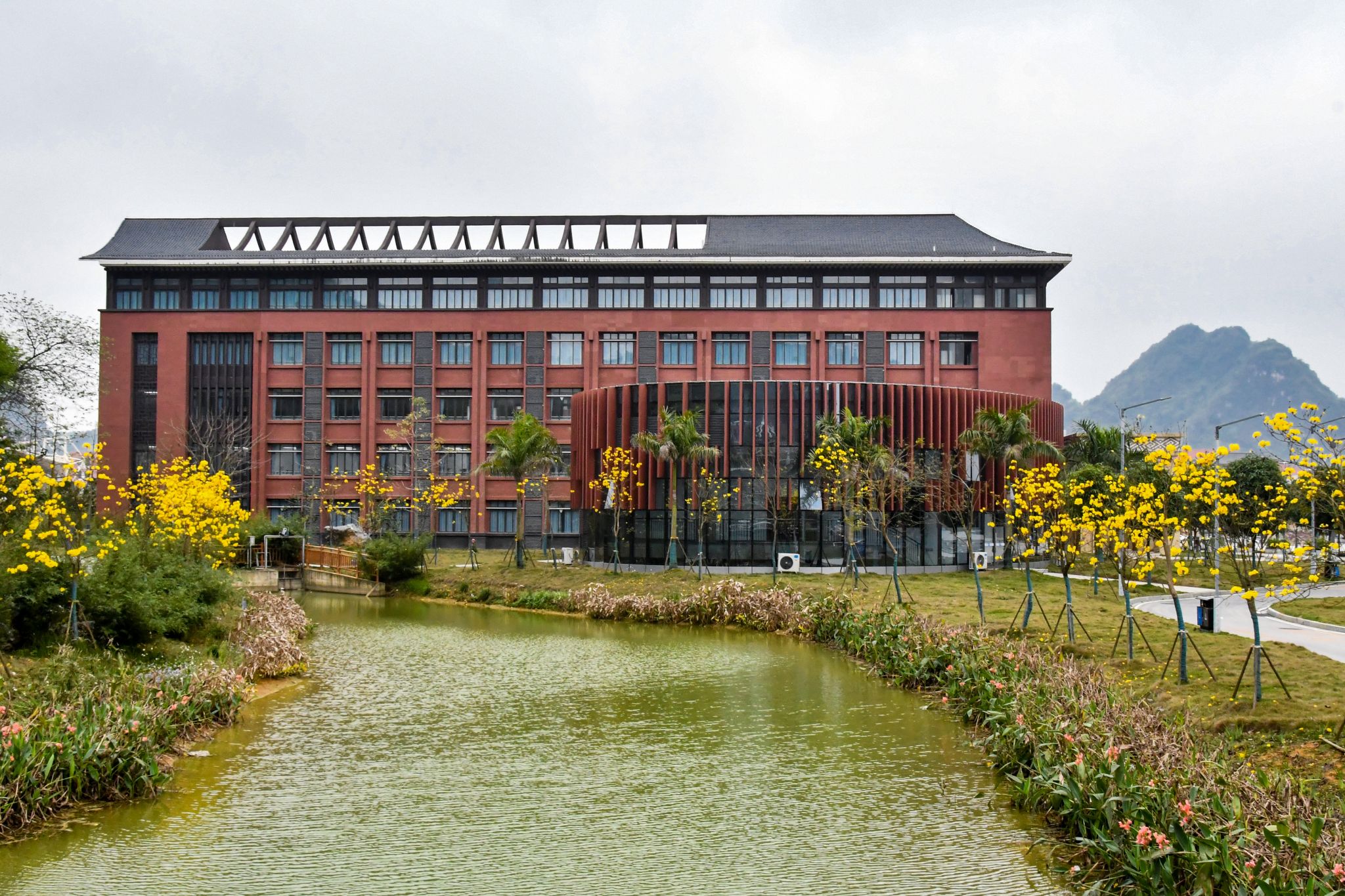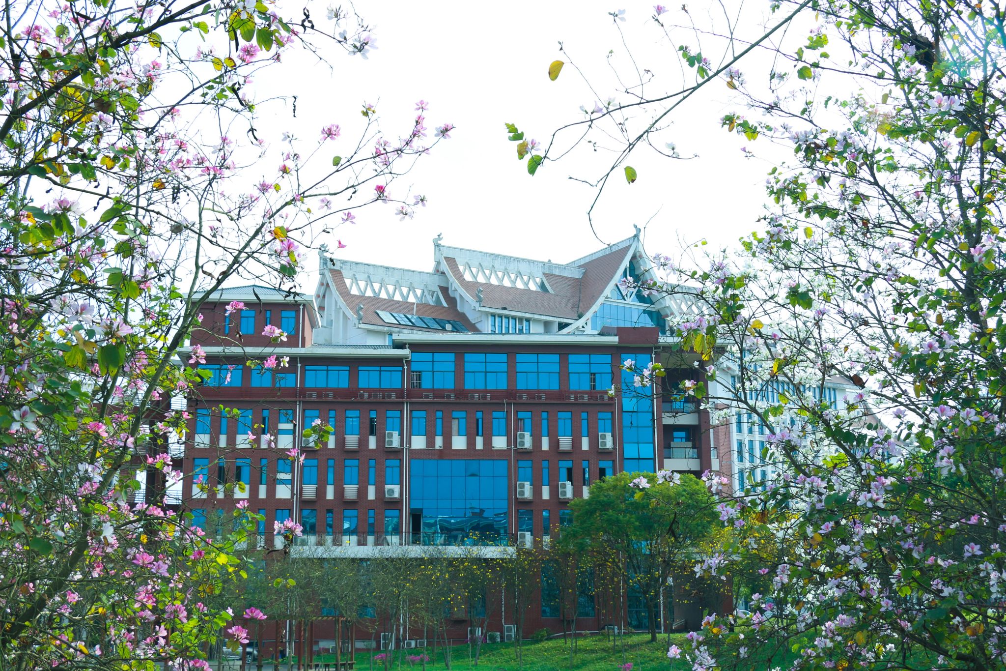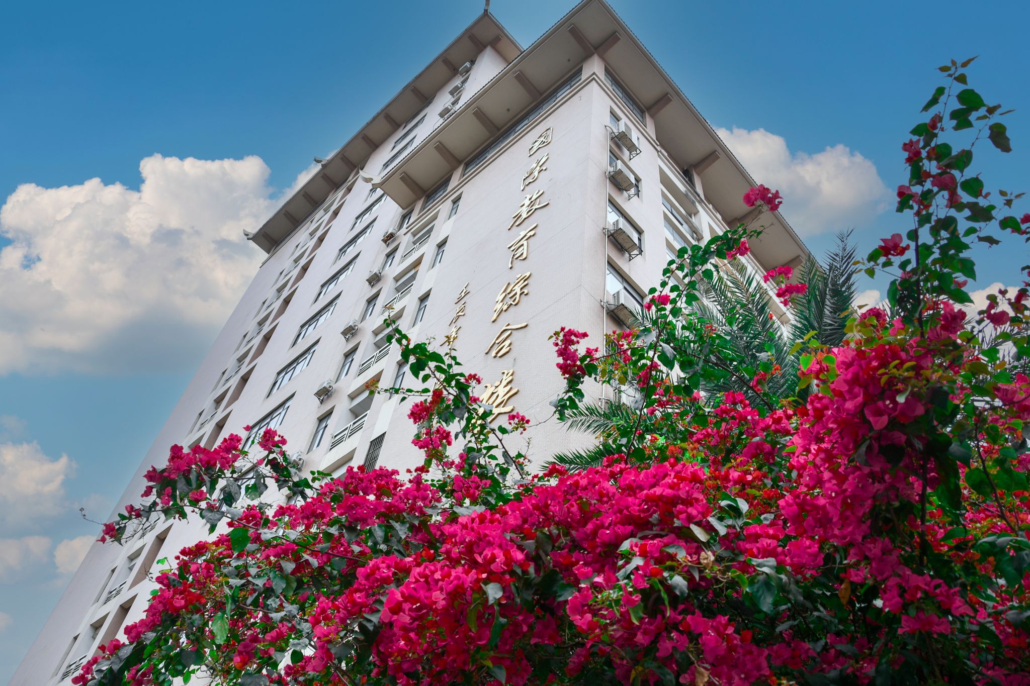 教学楼前梅花绽,疏影横斜映朝阳